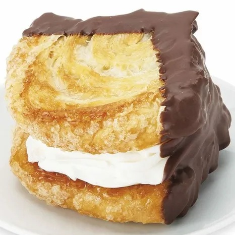 Description: A large, fan-shaped puff pastry that is caramelized to a deep golden brown, sandwiched with buttercream, and dipped in chocolate.