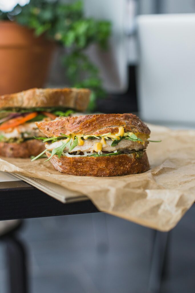 Mix sauce: 2 tbsp mayo, 1 tsp mustard, pinch of garlic, 1 tsp banana pepper juice.