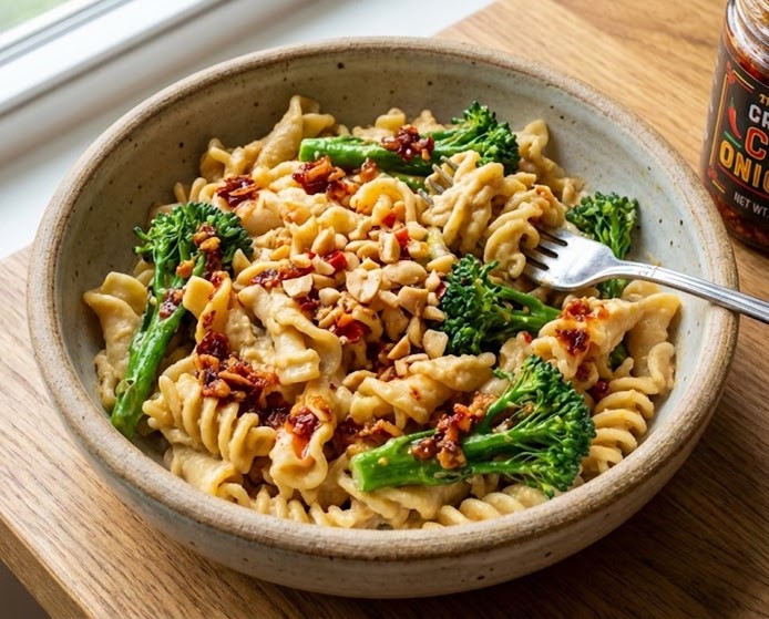 Crispy Chili Oil Hummus Pasta