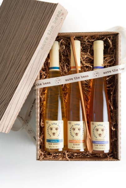 This delightful honey trio includes three distinct flavors that add a touch of sweetness to tea, baked goods, or charcuterie boards.