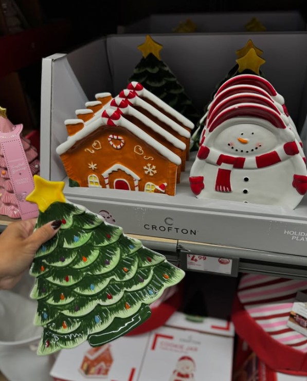 - Charming ceramic dishes in white embossed Christmas tree or green Christmas tree with candy cane-inspired trimming; available November 12.