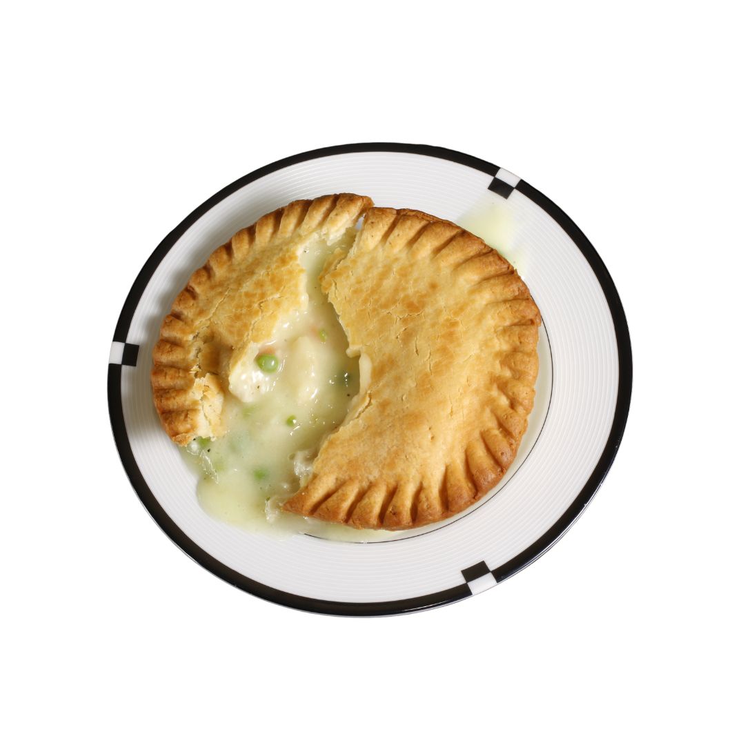 A flaky crust packed with tender chicken, vegetables, and a creamy sauce.