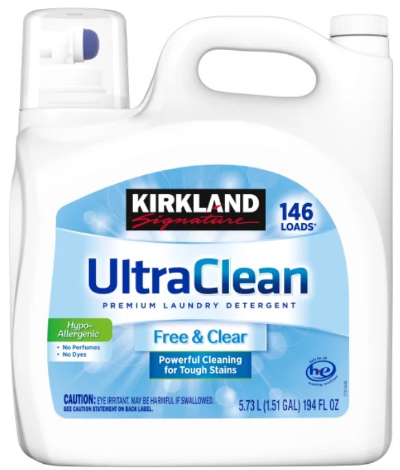 Ideal for sensitive skin, Kirkland’s Free & Clear Laundry Detergent cleans effectively without using dyes, fragrances, or optical brighteners. It’s tough on stains but gentle on your clothes and skin.