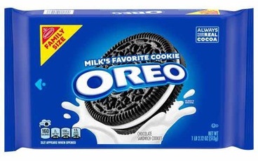 Description: A standard-sized package of original Nabisco Oreo cookies.