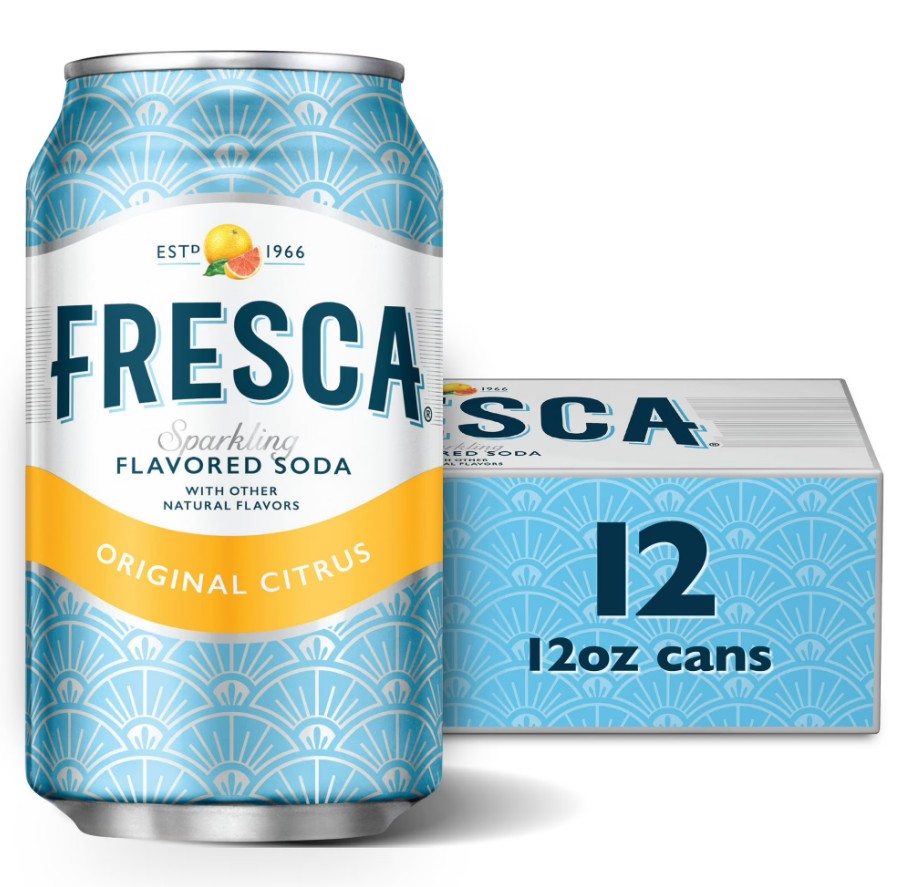 Description: A 12-pack of 12 oz aluminum cans (e.g., Fresca or other name brands).