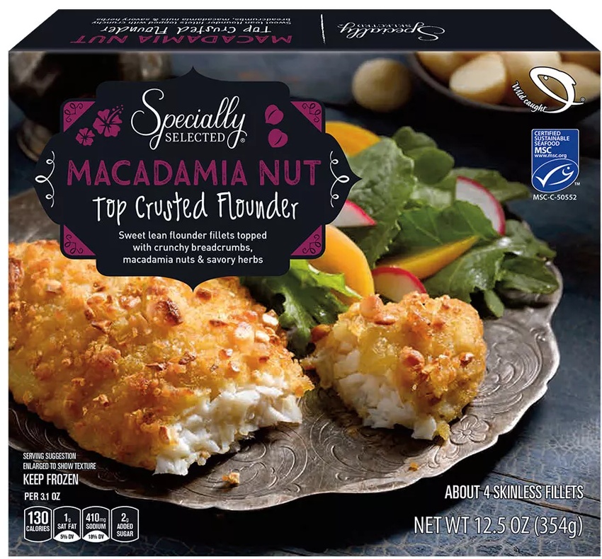Description: Wild-caught flounder fillets topped with a buttery, crunchy macadamia nut crust.