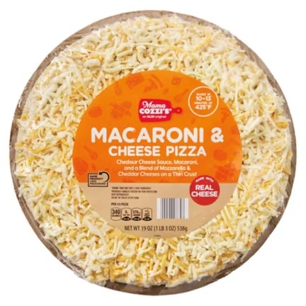 Description: A heavy, 19 oz deli-style pizza topped with creamy macaroni, cheddar, and mozzarella.