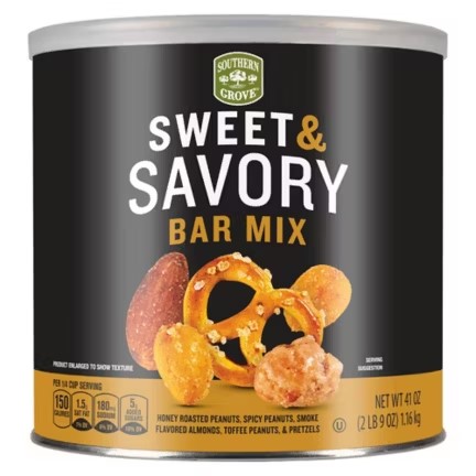 Description: A massive 40 oz tub featuring honey roasted, spicy, and toffee peanuts mixed with pretzels and corn nuts.