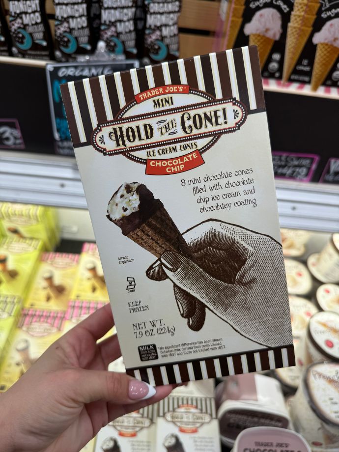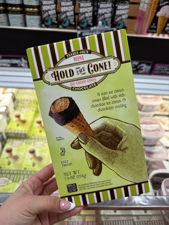Enjoy a perfectly portioned treat with Trader Joe’s Hold the Cone! Mini Ice Cream Cones. These mini cones are filled with rich vanilla ice cream and coated with a chocolatey layer, making them an ideal snack for any time of the day.