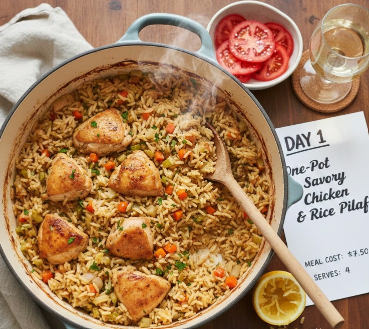 Day 1: One-Pot Savory Chicken & Rice Pilaf