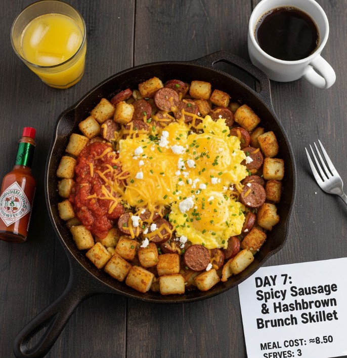 Day 7: Spicy Sausage & Hashbrown Brunch Skillet
