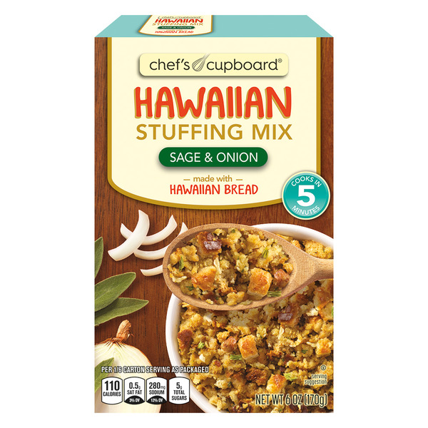 Non-perishable stuffing mix in Herb or Garlic Rosemary, a holiday staple that’s versatile year-round.