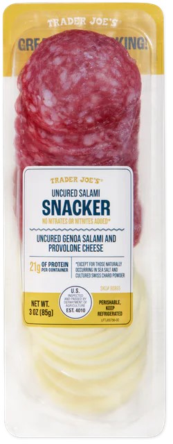 Description: A portable pack with sliced salami and provolone cheese.