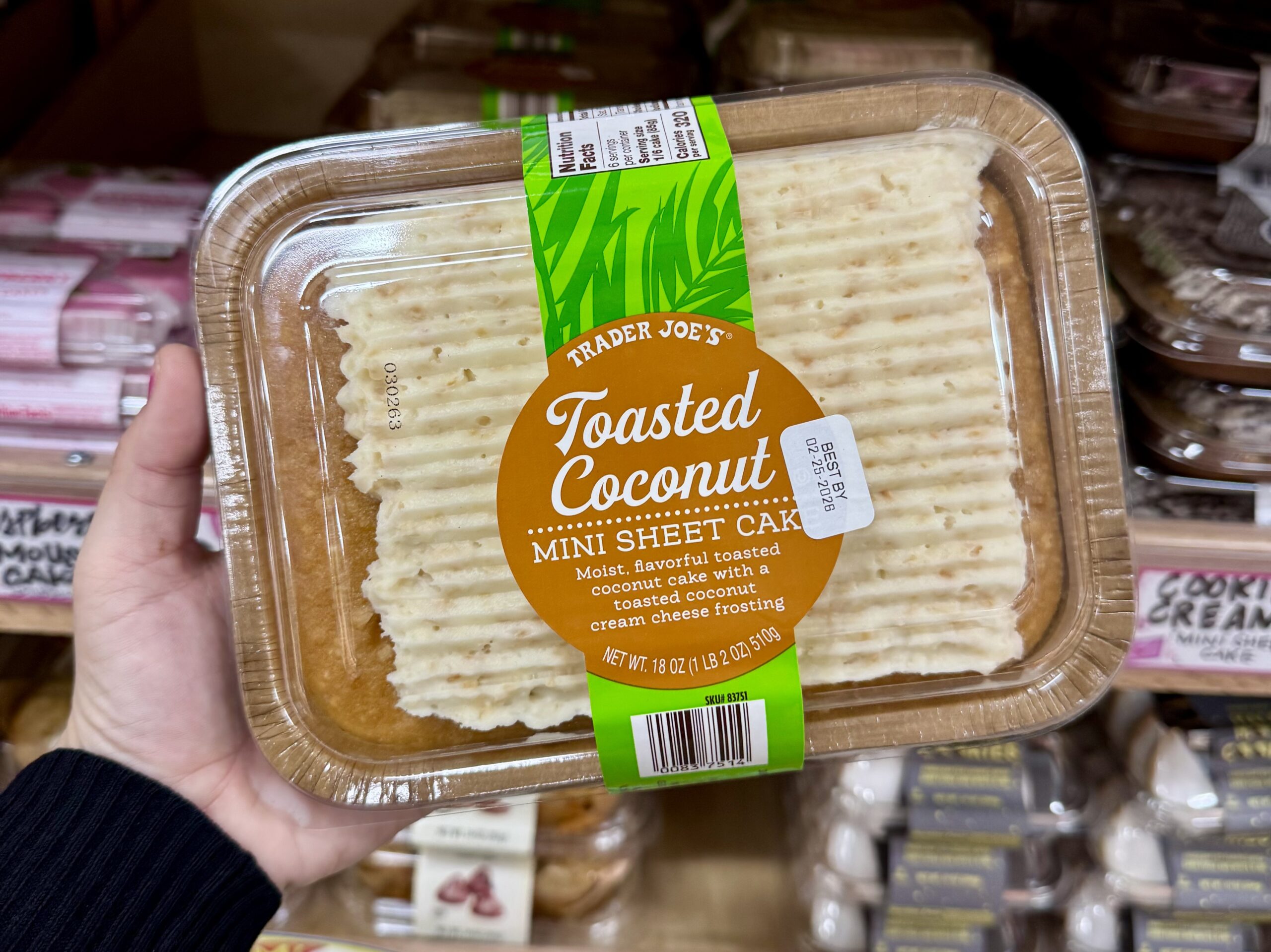 The Buzz: Trader Joe’s mini sheet cakes have a cult following, and this new March version uses coconut milk in the batter for extra moisture. It is topped with a toasted coconut cream cheese frosting, making it a trending “upscale” dessert find.