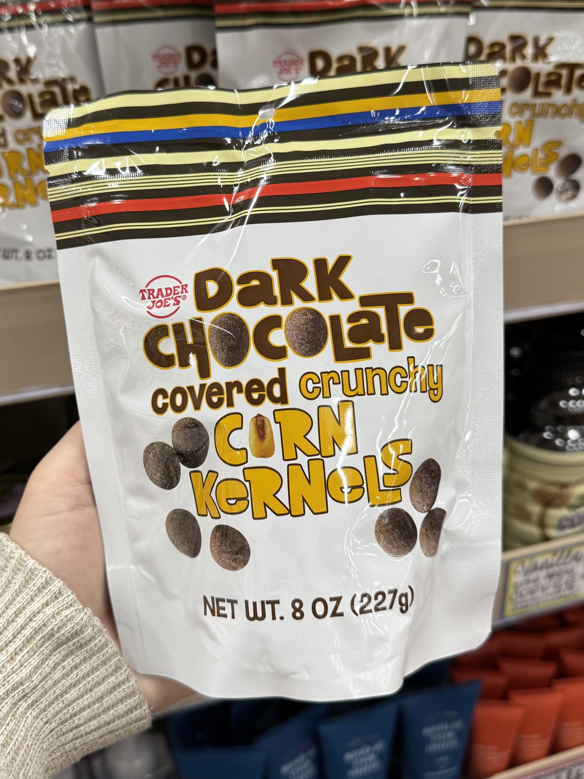 Dark Chocolate Covered Crunchy Corn Kernels – $3.99